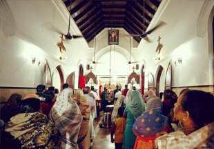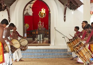 The ‘raasa’ (festival procession), one of the main rituals of the ceremony is accompanied by the drummers while the congregation performs the three mandatory perambulations around the church. Many rituals here are local and indigenous, indicative of the syncretic influences of the Orthodox Church.